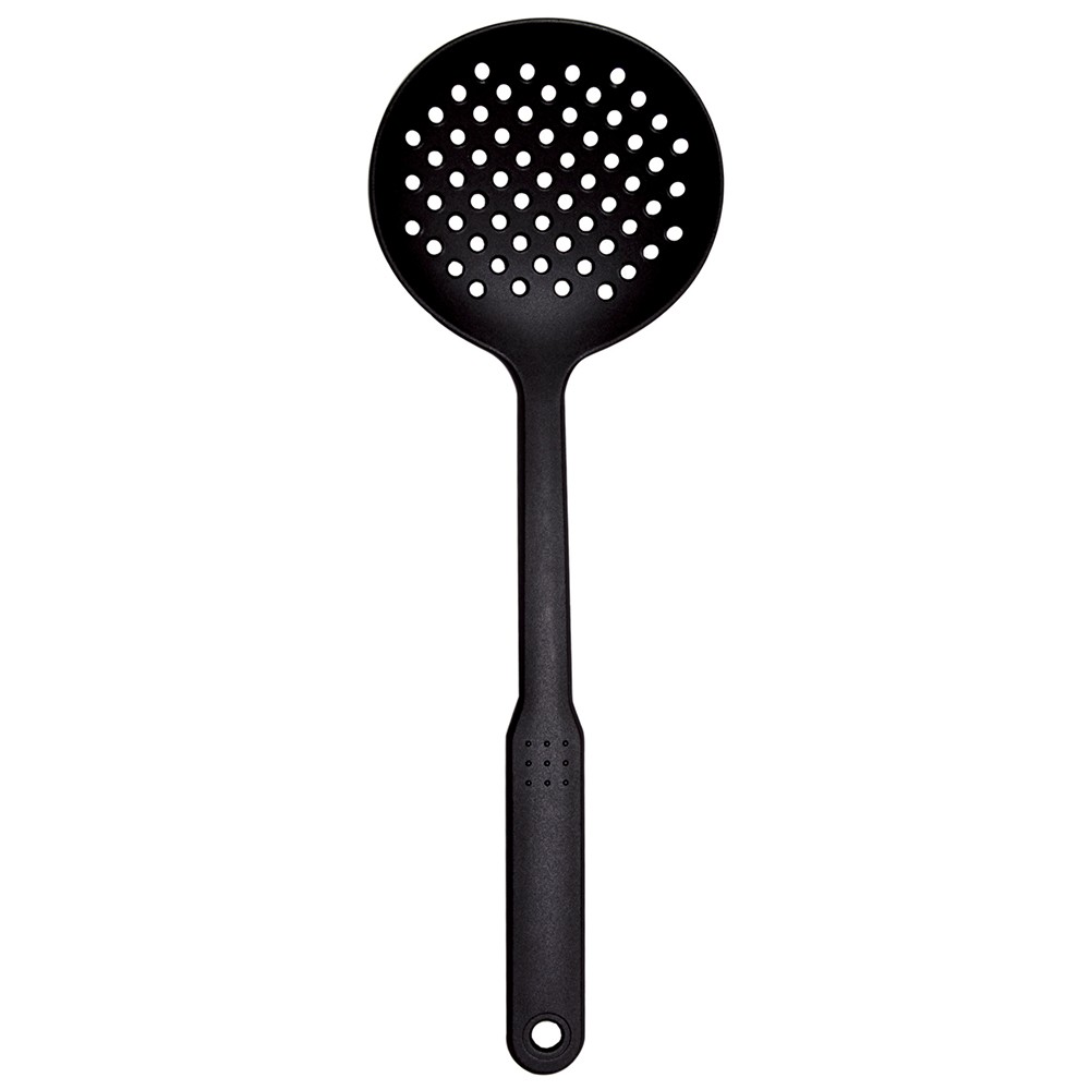 A Escumadeira é indicada para panelas antiaderentes porque o nylon evita riscos no fundo dos utensílios.