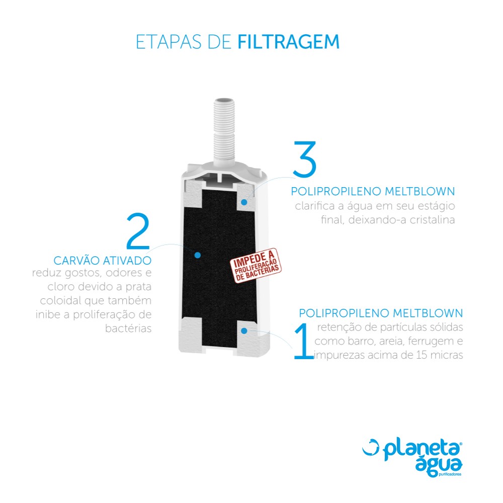 Para melhores resultados de filtragem, o item deverá ser trocado a cada 3 meses (1500 Litros).