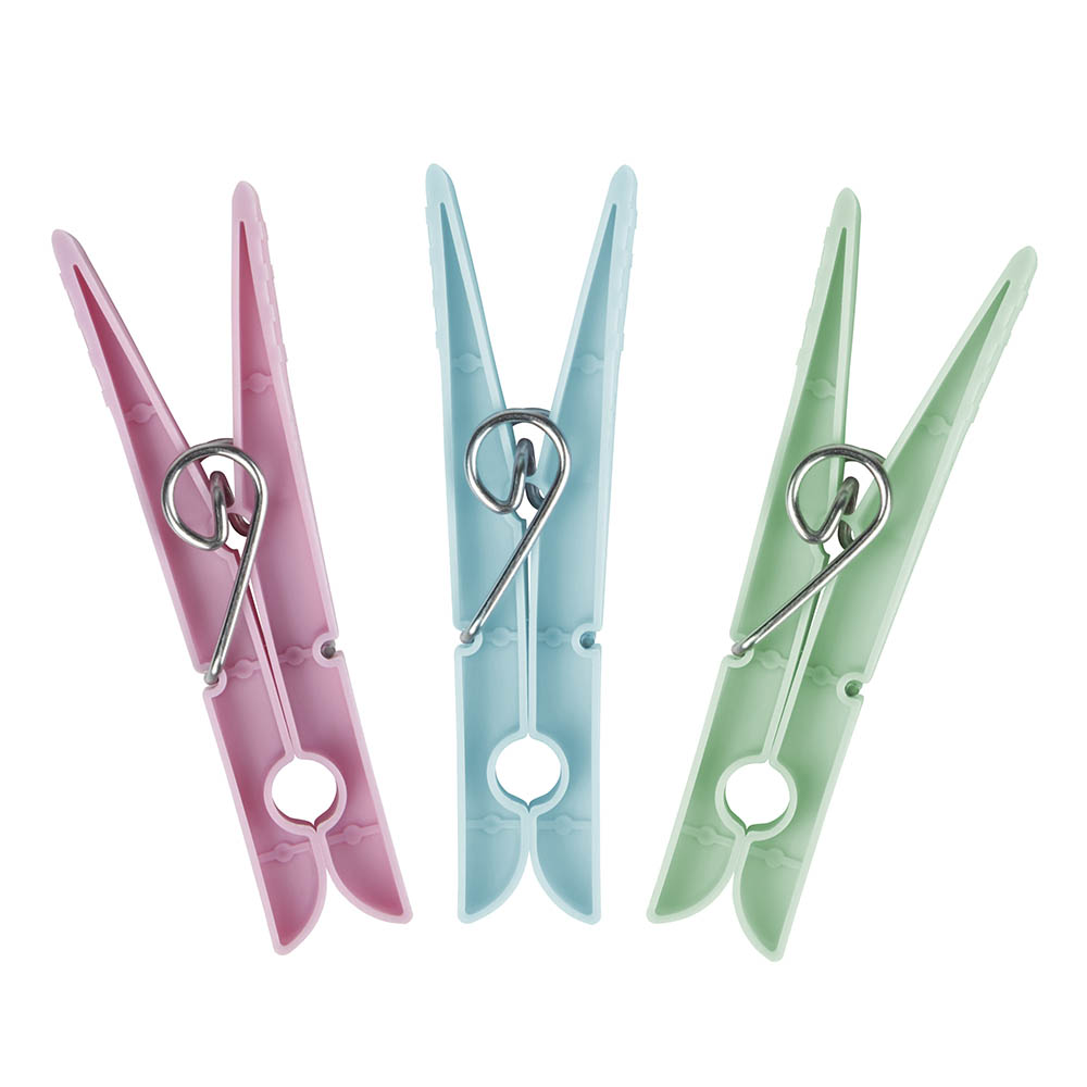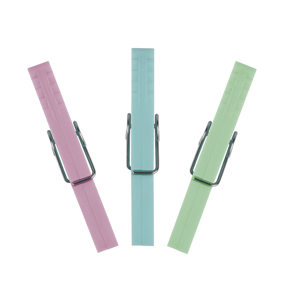 O Prendedor Mor traz cores suaves pra colorir o seu varal, sendo doze unidades divididas em rosa, verde e azul. Eles são ideais para peças pequenas e leves. Sua estrutura é feita em polipropileno com arame em aço, garantindo maior durabilidade sem marcar suas roupas. Perfeitos para ficar sempre à mão durante as tarefas domésticas.