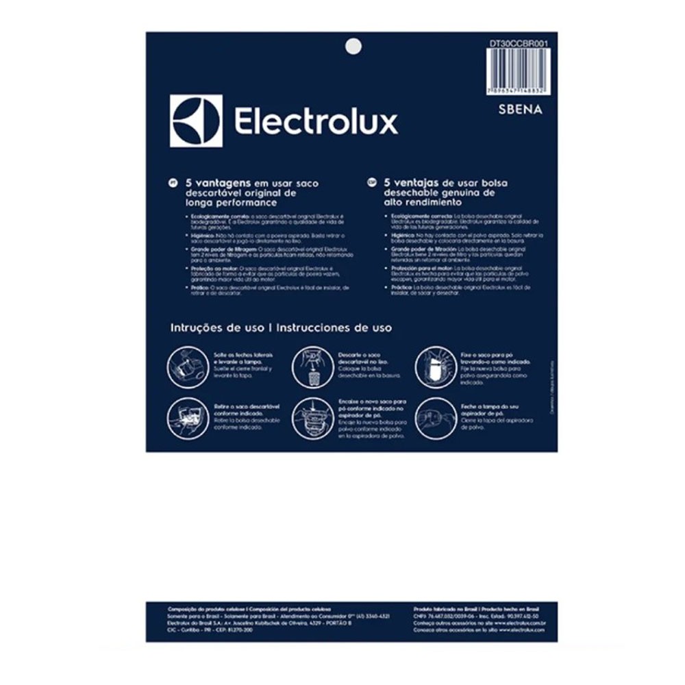 Os sacos descartáveis Electrolux são biodegradáveis e não agridem o ambiente. São higiênicos e desenvolvidos com 2 níveis de filtragem, que evita que a poeira escape e danifique o motor. Fácil de instalar e de descartar, é o único que garante a qualidade Electrolux na sua casa.